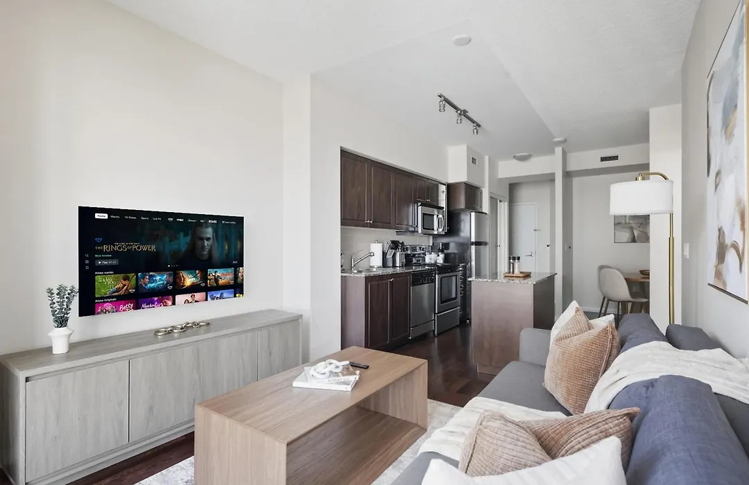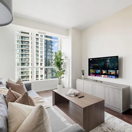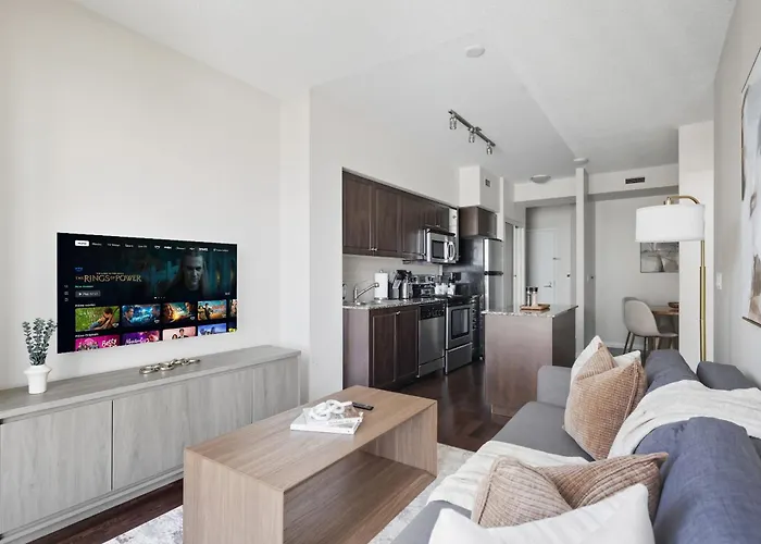 Das 60 m² große Modern Lakeside 1Br Condo In Downtown Toronto liegt im Stadtviertel Toronto Stadtzentrum von Toronto in 5 Gehminuten Entfernung vom Fort York. Das Apartment verfügt über eine Terrasse, die sich auf die Stadt öffnet.